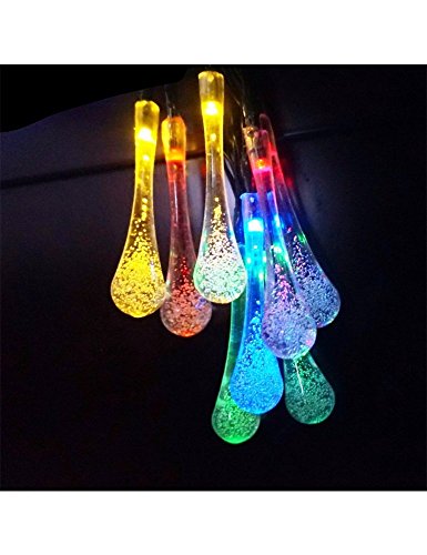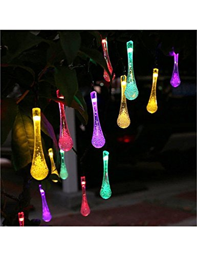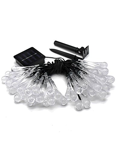 - BEST DECORATION ITEM - Perfect solar party lights for holiday decoration, unique water drop design and special appearance decoration makes your environment out of ordinary, create a romantic and warm atmosphere to your gardens, patio, lawn, porch, gate, yard, etc. Just like a solar lighting outdoor.
