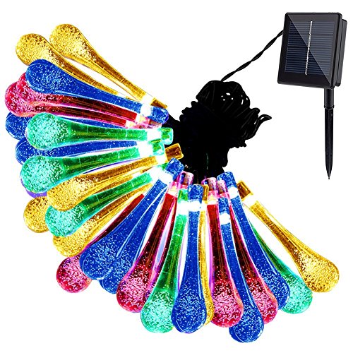 LED Solar String Lights - 20 ft 30 LED Water Drop Fairy Solar lights, 8 Modes Waterproof Solar Lights for Outdoor/Indoor Home Garden Christmas Wedding & Holiday Decoration