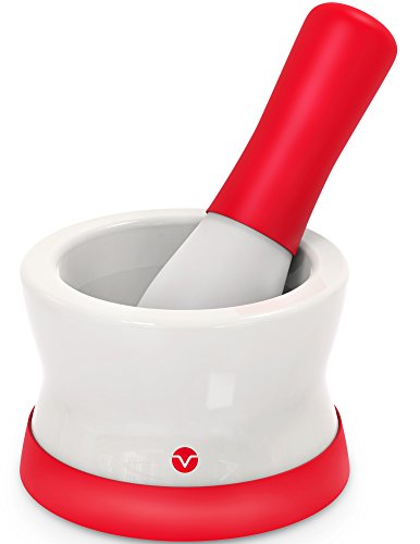 Studio : Vremi Publisher : Vremi Product Description Bewitch taste buds every time, with the Vremi Basic Witch's Mortar Pestle. By hand-grinding ingredients, you release oils, flavors, and aromatics that food processors miss. The apothecary grade ceramic means neither odors or flavors transfer from other foods, plus the silicone on the base and handle make for a better grip during use. Go ahead and add a dash of freshly ground magic to every dish: It's easier than you think. Vremi Basic Witch's Mortar Pestle Details: - 7 oz capacity