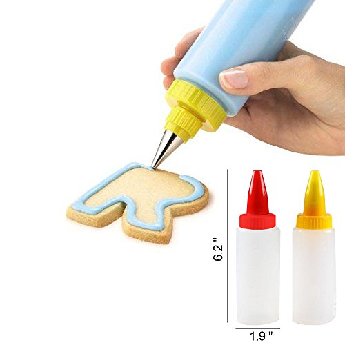 Studio : LOHOME Publisher : LOHOME Product Description QUALITY Food-Grade HDPE plastic, BPA Free, Microwavable and dishwasher safe on the top row. Great for Storing and dispensing liquids, ketchup, condiments, icing, oil, and crafts. USEFUL 2 spices Squeeze Bottles can be used in your kitchen for Sauces, Oils or Condiments, or use in the craft room for paints, solvents, glue or glitter. 3 Cupcake Squeeze Bottle 1 Frosting Spatula can be used to make beautiful cupcakes. EASILY IDENTIFIABLE Transparent bottle is very convenient to distinguish different color spices and cream. If the color of the spices is same, you can choose Red, Yellow or Clear. Write on with marker or use a label to identify contents. REFILLABLE Top unscrews for easy refilling. Available in regular neck for liquids, or wide neck for products that need to be spooned in. LEAK RESISTANT 2 full rows of threading make these bottles virtually leak-free! Many of the bottles found on the web have only a half row of threading and they can leak or the tops can pop off! No worries with these bottles. 0