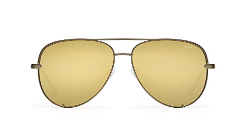 Product Description Stop the show and keep it HIGH KEY. Designed in collaboration with Desi Perkins, this worldwide fan fave has turned the classic aviator on its head. Featuring an oversized metal frame with unforgettably chic flat reflective lenses, each color of HIGH KEY is a wardrobe essential. Don't miss out on all new limited edition sexy silver and smolderingly black fade, featuring a special #QUAYXDESI clear case and cleaning cloth. Get 'em before they're gone! Width: 143mm. Height: 55mm. Nose Gap: 19mm. 0