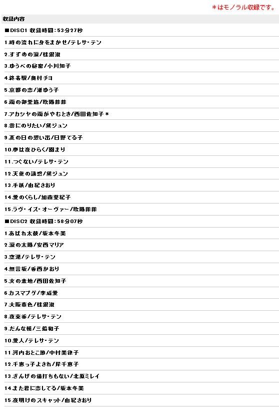 豪華女性歌手による昭和のはやり歌名曲を30曲収録!懐かしい歌声とともに想い出が甦る!