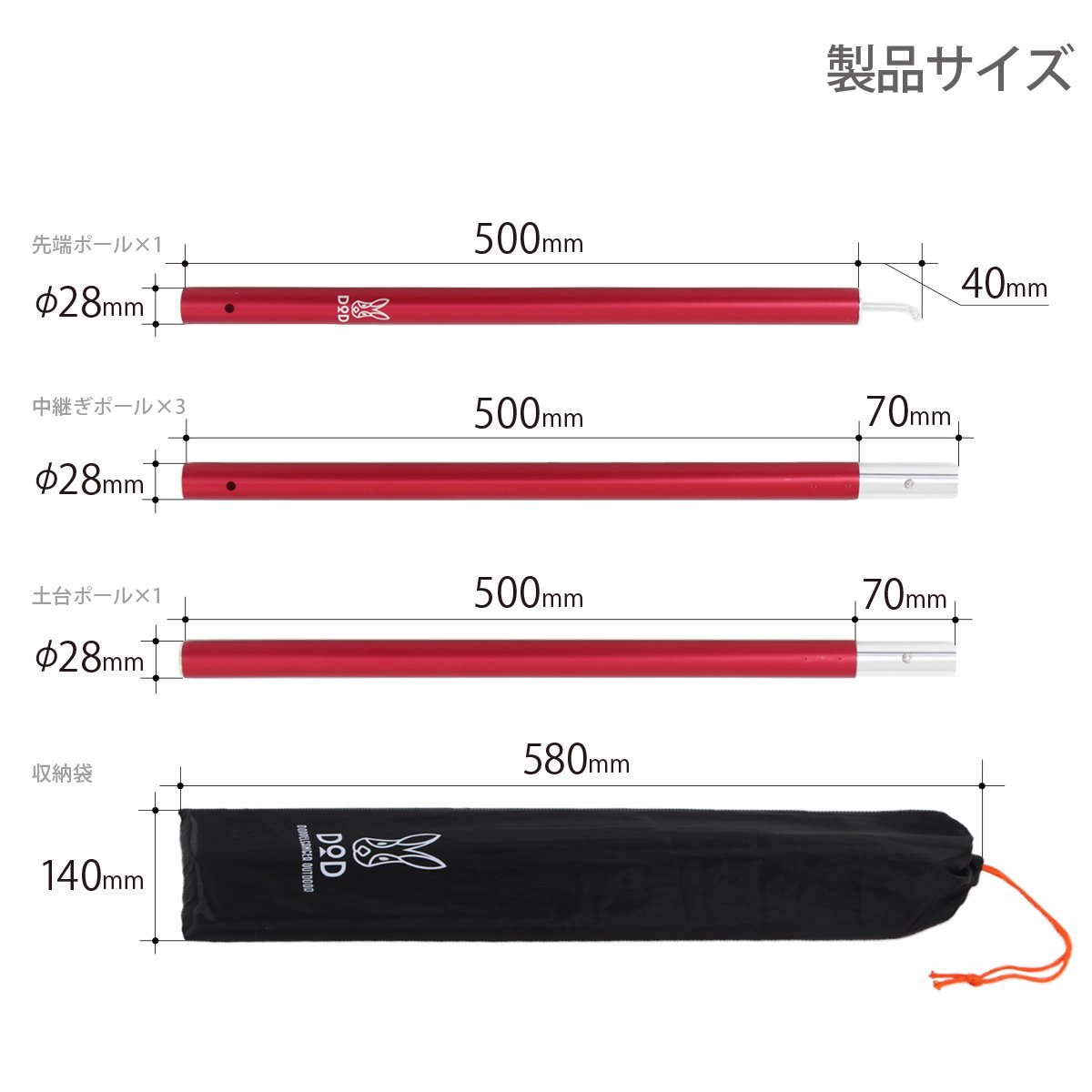 It has high strength with 1.4 mm aluminum and 28 mm in diameter, and creates a comfortable space with a high ceiling height of 250 tarp.