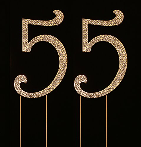 - MULTIPLE USES AND A KEEPSAKE: Use this as a cake topper for 55th birthday or anniversary, a centerpiece, part of a floral arrangement or place setting. Remove the metal prongs after the party and save this as a keepsake. This is a must have bling cake topper for your birthday or anniversary party decoration.