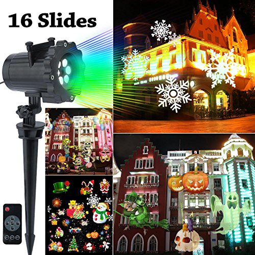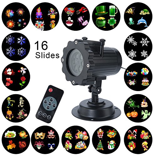 Lovebay Led Christmas Light Projector-2017 Newest Waterproof Landscape Spotlight with 16 Slides Switchable Patterns Dynamic Landscape Motion Projector Light for Birthday Halloween Party Holiday
