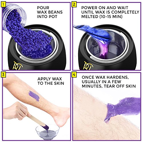 - PROFESSIONAL RESULTS WITH NO MESS - Our high grade wax beans melt quickly and cool firmly while gripping each strand of hair, gently removing it from the root delivering a painless experience while not having to deal with messy and cumbersome wax strips
