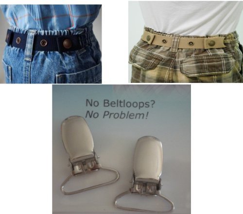 This GENIUS product consists of a short piece of suspender elastic with snaps that fits in the back 3 belt loops of the child's pants and snaps over the outer 2 loops to cinch the pants thereby keeping them from falling down. In essence, it's a kind of toddler belt. Dapper Snappers "Fix Droopy Drawers in a Snap!" and are a smart, cost-saving alternative to adjustable waist pants for skinny toddlers and preschoolers. Dapper Snappers are: *Versatile in a wide range of colors for girls and boys *Recommended for ages 9 months -6 years old and One Size Fits All *Perfect for kids who are in between sizes or wearing hand-me-downs! *Adjustable to 4 sizes *Convenient - no need to remove for diaper changes & doesn't impede potty training *100% in the USA *Mom-invented If you are looking for a money saving solution to a common childhood wardrobe malfunction, Dapper Snappers are for you! No Belt Loops? No Problem! Now, with Dapper Snappers clips, you can use your favorite Dapper Snappers toddler belt or adult belt even if you don't have beltloops! Dapper Snappers clips are specially made to accomodate Dapper Snappers. All you have to do is slide your dapper snapper through the clip loops. Clips have plastic inserts to prevent damage to clothing and extra strong loops that won't bend or break.