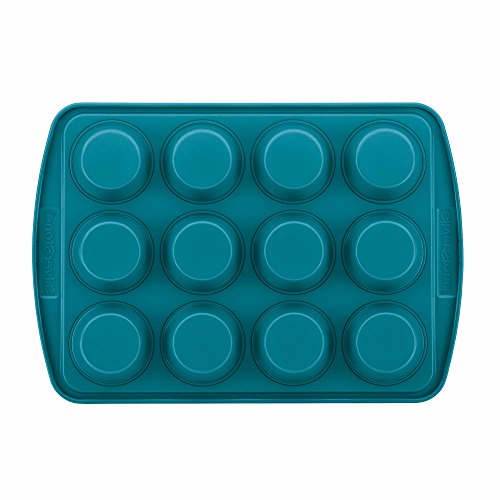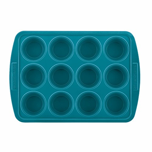 SilverStone Hybrid Ceramic Nonstick Bakeware Steel Cupcake & Muffin Pan, 12-Cup, Marine Blue
