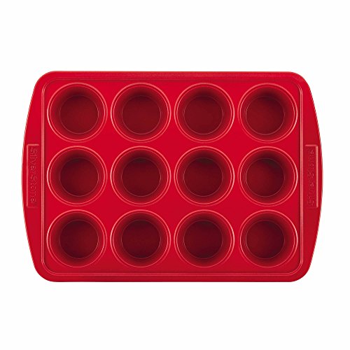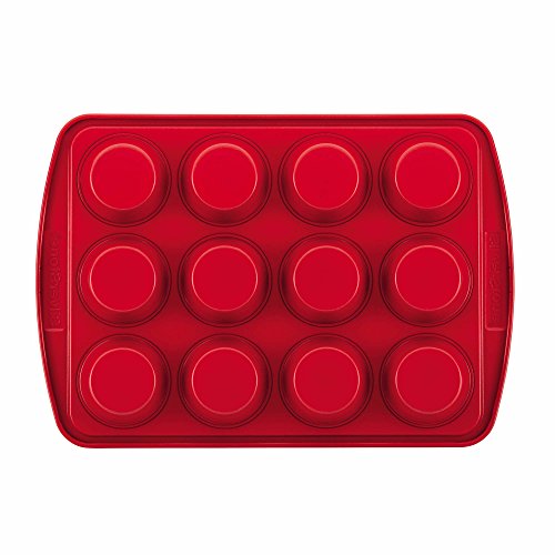 SilverStone Hybrid Ceramic Nonstick Bakeware Steel Cupcake & Muffin Pan, 12-Cup, Chili Red