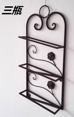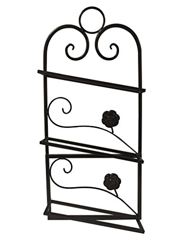 Linwell Wine Rack Wall Mounted Vertical Iron 3 Bottles Black Color With Hook And Flowers Design