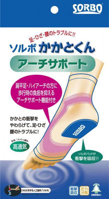 | 医療現場から生まれた理想の衝撃吸収素材「ソルボ」を使用。テーピングのようなサポート機能で内側・外側のアーチを補整し、足首を安定させて、歩行時の負担を軽減します。 |