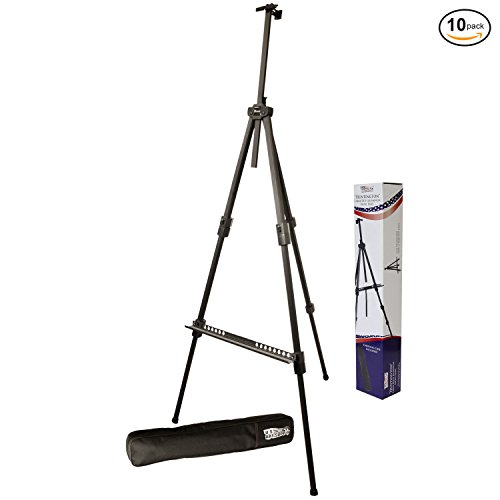 US Art Supply Huntington (Large) 72 Inches Tall Aluminum Tripod Field and Display Easel-Extra Sturdy Premium Metal Construction with Carry Bag (10-Easels)