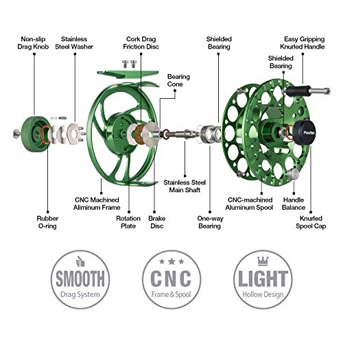 -. Brand : Piscifun -. Feature : THREE-YEAR WARRANTY - Your reel has been set at the factory for left-hand retrieve. To convert your reel to right-hand retrieve, please contact us for guidance. / SOLID and LIGHTER WEIGHT - Precision CNC-machined 6061-T6 aluminum alloy for high-impact durability; Larger CNC hollow design makes the reel lighter than ordinary ones. / SILKY SMOOTH DRAG - Multi-disc cork and stainless steel drag system with one-way clutch bearing for smooth immediate drag engagement. Accurate click drag and silent retrieve. / CORROSION RESISTANCE - Hard anodized for surface protection increases abrasion resistance and weather fastness; Cold forged and tempered for superior strength and rigidity. / Mid-ARBOR DESIGN - Reducing line memory while also facilitating lightning-quick line pickup. -. Label : Piscifun -. Manufacturer : Piscifun -. ProductGroup : Sports -. ProductTypeName : OUTDOOR_RECREATION_PRODUCT -. Publisher : Piscifun -. Studio : Piscifun -. Title : Piscifun Sword 2 Lighter Weight Fly Fishing Reel with CNC-machined Aluminum Alloy Body 3/4, 5/6, 7/8(Black, Green)