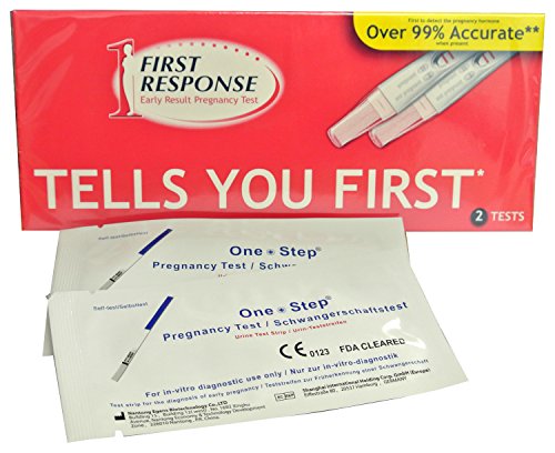 -. Binding : Health and Beauty -. Brand : First Response -. Feature : Tells you first....6 Days Earlier than the day of your missed period / 1 Pack of 2 Tests plus 2 additional 10mIU/ml pregnancy test strips / Results in 3 minutes - Unsurpassed accuracy - Over 99% Accurate / Just hold the test in your urine stream for a few secounds / Two pink lines pregnant, one pink line not pregnant -. IsAdultProduct : 0 -. Label : Church & Dwight -. Manufacturer : Church & Dwight -. PackageQuantity : 1 -. ProductGroup : Health and Beauty -. ProductTypeName : HEALTH_PERSONAL_CARE -. Publisher : Church & Dwight -. Studio : Church & Dwight -. Title : 1 x Double First Response Pregnancy Tests and 2 x Ultra Early 10mIU Pregnancy Tests Strips by First Response / One Step®
