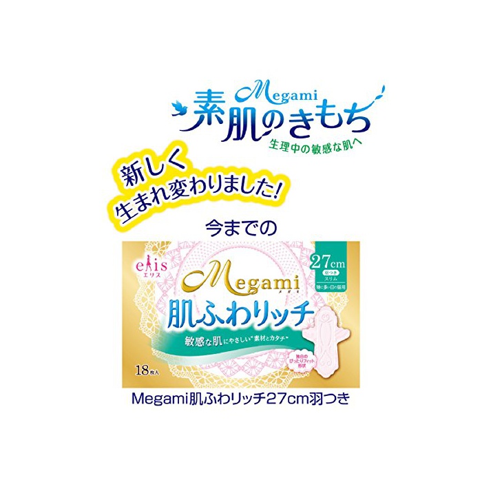 원본상품명: エリス Megami 羽つき 27cm スリム (特に多い?) 18枚 素肌のきもち