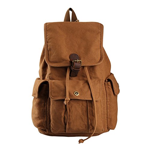 -. Feature : Material: high density thick cotton canvas with genuine cow leather, durable and soft / Full fabric lining protect your belongs avoid scratch / Product Dimensions: 16.5H x 13W x 6.3D inch / Weight: 1.9 pounds / Large capacity with 28 liter, ample roomy for storing IPAD AIR, portable textbooks, A4 magazine etc, and will fit 15.6 inch laptop / Multiple pockets : 3 exterior pockets with metal snaps closure for quick access / 1 big zipper pocket in back to store your necessary gadgets , music player , wallet and cell phone etc / 1 small zipper pocket inside / Main compartment with top drawstring and metal quick snaps closure /Two kinds of closures for your choice and provide more security for your belongs / Adjustable padded shoulder straps for carrying comfort / Top web handle for easy carry with a single hand or be hung up for storage / Whether you're running errands around town or heading to the school, this vintage backpack will make the perfect companion!