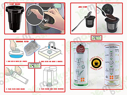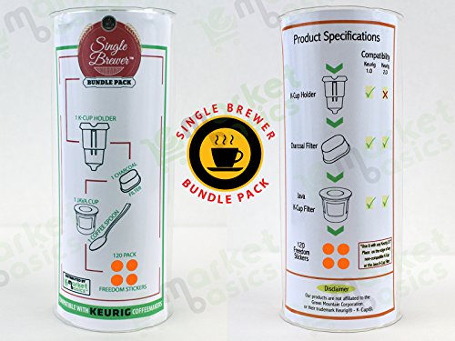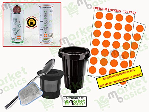 • Package includes: 1 K-Cup Holder - 1 Charcoal Filter - 1 Java K-cup Filter with Spoon - 120 Pack Freedom Stickers