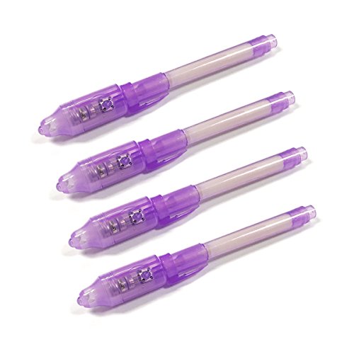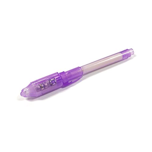 Studio : ALLYDREW Publisher : ALLYDREW Binding : Toy Product Description Be a secret agent with these spy pens. Kids will love playing spy with these invisible ink pens; they also make great party favors. Write secret messages and clues with them on paper, skin, and even T-shirts. Shine the UV light at the end of the pen's cap to reveal the secret message. The ink is permanent but washable. 0