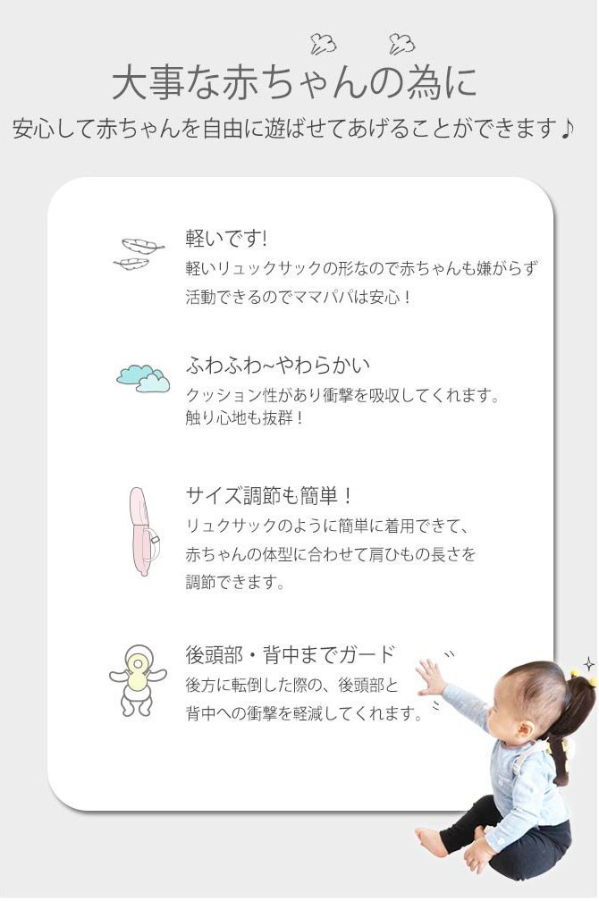 When a baby wears it and learns to crawl, walk to the head or shoulder, you can hurt you can prevent the baby falling.