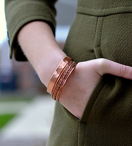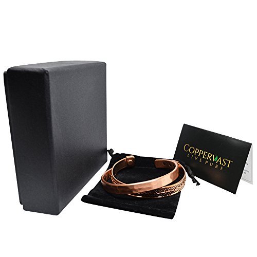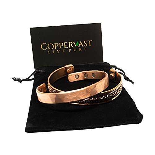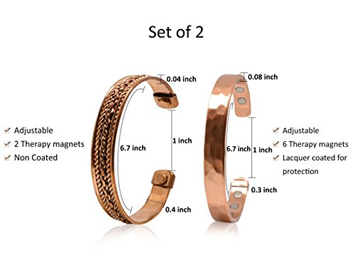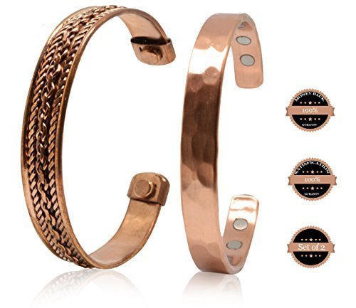 Copper bracelets for arthritis a healing metal combined with magnets produce a therapeutic effect: Copper is known to be an essential element in maintaining a healthy body. It acts as a brain stimulant and boosts immunity and energy. Helps in reducing symptoms of arthritis, It is believed that copper and magnets bracelets improve blood flow providing relief from arthritis, migraines, carpel tunnel and assists in the delivery of oxygen and nutrients to the body's tissues. Directions to clean: Copper is known to change to a brown or black color when it reacts with oxygen; this can be easily avoided by cleaning your copper jewelry regularly in one of the two following ways: Using Lemon and Salt: Prepare a mixture of lemon juice and salt. Rub the mixture over the tarnished areas of the bracelet with a soft cloth until clear. Rinse with warm water and polish. Using Salt, Vinegar, and flour: Prepare a paste by adding one tablespoon of salt to one cup white vinegar and flour. Rub the paste over the tarnished areas of the bracelet with a soft cloth until it is clear. Leave for 15 minutes and rinse with warm water.Disclaimer !! This product is not intended to diagnose, treat, cure or prevent disease. Do not use if you have Pacemaker, Insulin pump, defibrillator or any other implanted medical device. These bracelets are not suitable for pregnant women. 100% MONEY BACK GUARANTEE NO questions asked makes this your best bet for a no-risk purchase.HURRY AND BUY YOURS NOW before our supplies run low.Scroll up click "Add To Cart Now"! 0 |