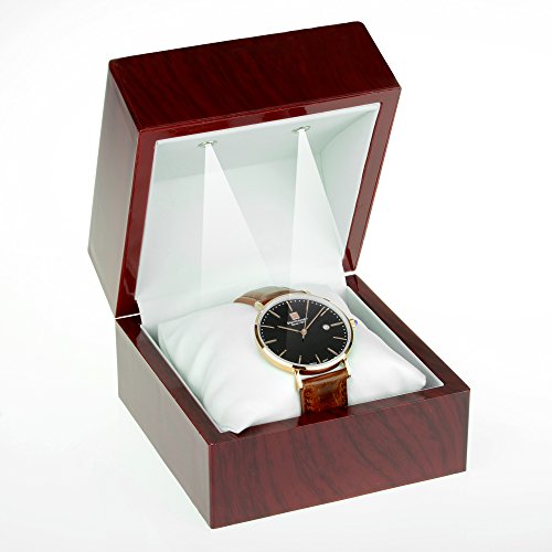 -. Binding : Kitchen -. Brand : Geff House -. Feature : Beautiful Dark Cherry Wood Color / LED Light Turns on When Opening Box and Turns Off When Closed / Available in White Interior and Black Interior / Features Removable Pillow / Box Dimensions: 4" Wide X 4" Deep X 3" Height -. IsAutographed : 0 -. Label : Geff House -. Manufacturer : Geff House -. PackageQuantity : 1 -. ProductGroup : Home -. ProductTypeName : HOME -. Publisher : Geff House -. Studio : Geff House -. Title : Geff House Cherry Wood Style Plastic Watch Gift Box with LED Lights