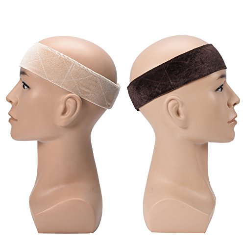 Wig Band Elastic ULG Wig Headband Grip Velvet Scarf Head Hair Comfort Velcro Adjustable Extra Hold Non Slip Bands Beige Brown 2 Piece