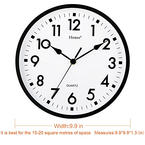 -. Title : HENSE 10-inch Moderate Size Living Room Office Decorative Clocks Battery Operated Round Mute Silent Sweep Second Clock Simple Creative Wall Clock HW11
