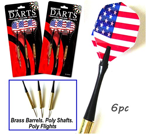 ALAZCO 6pc USA American Flag Flights Hard Tip Dart Brass Barrels Poly Shaft Bar Games Man Cave Patriotic RED WHITE & BLUE