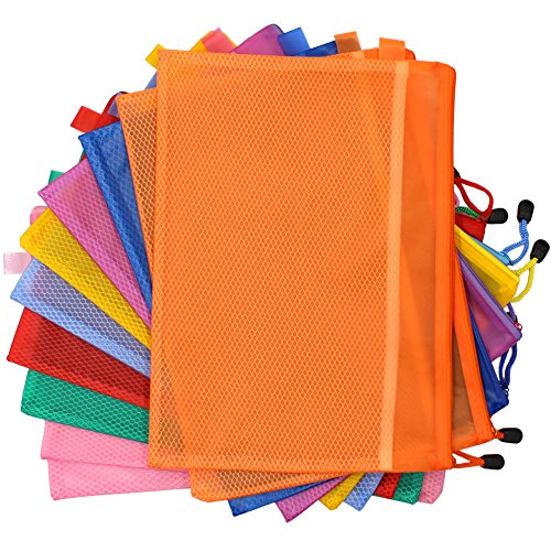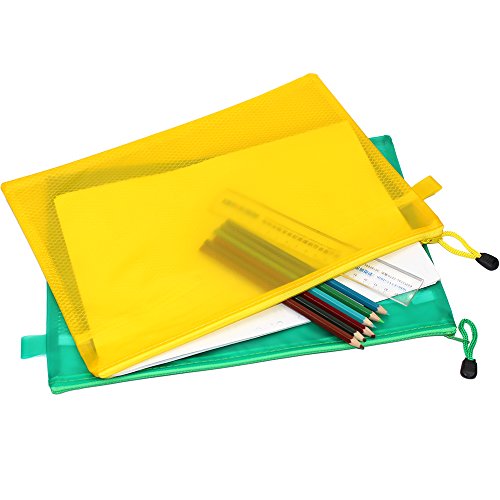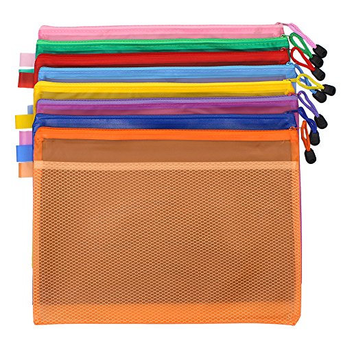 Md trade 10Pcs A4 Size Plastic Waterproof Double Layer Zippered Mesh File Bags Document Holder Cash Coin Stationery Storage Pen Pencil Organizer Case Bill Invoice Bag pouches (Random Color)