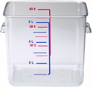Rubbermaid Commercial 6306 6 qt Capacity, 8-3/4" Length x 8.8" Width x 6.9" Height, Clear Color, Polycarbonate Space Saving Square Container