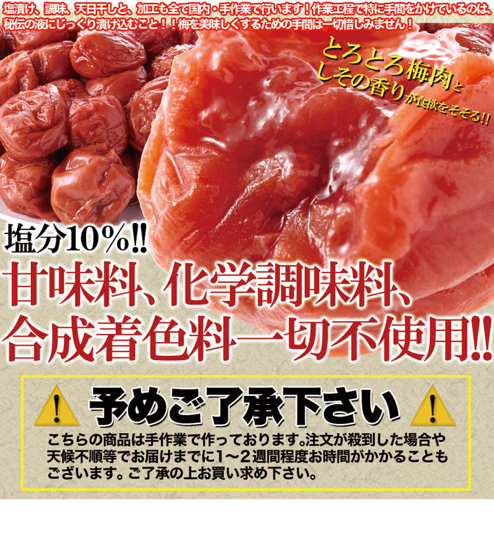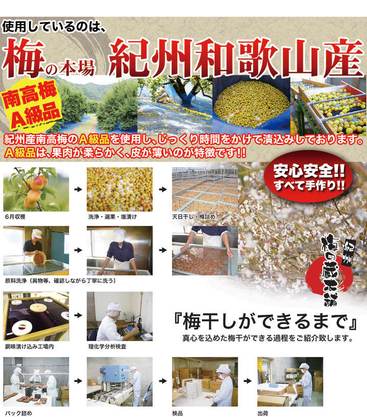 ●原材料:梅、漬け原材料(食塩、還元水飴、醸造酢、しそ液)、酸味料、野菜色素、V.B1