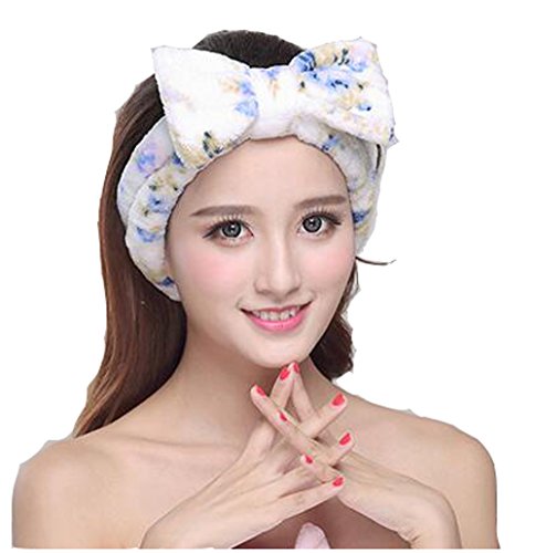 Huachnet Soft Caroset Cosmetic Headband-Polka Dots (White With Blue Flower)