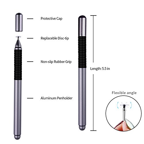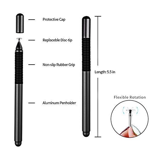 -. Feature : ☆ High accurate tip, makes you have a true writing feeling on the device. Ultra sensitivity will give your device to drawing, writing, sketching ,paint, reader and so on. / ☆ Handwriting stylus pen made of Aluminum alloy material, fashion beautiful, Non-slip rubberised grooved grip making gripping easy and comfortable. / ☆ Thin fine tip stylus keep your mobile & Tablet free from fingerP.R.Ints on the screen. The transparent navigation rubber point disc lets you see through on the screen of where exactly you are pointing. A perfect as GIFT! / ☆ Disc tip uses capacitance technology, it is replaceable. Additional 1 Pcs replacement Disc-tip parts.【Please refer to picture No.4】 Art pen provides a smooth pen-like writing experience for your touch screen tablets and smart phones. / ☆ Pencil compatible with Apple iPads, iPad Mini, iPhones, Kindle Fire, Kindle Paperwhite Android Tablets laptop, Android Phones, Samsung Galaxy, E- readers, nintendo, Smartphones and other Capacitive Computers Touch Screens devices.