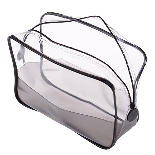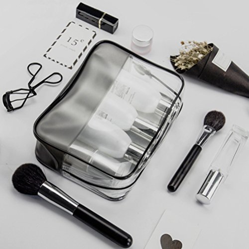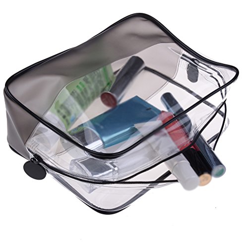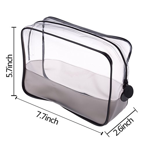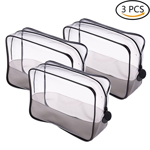 JUNKE 3 – Pack Portable Waterproof Clear PVC Cosmetic Bag with Zipper Makeup Bags Travel Toiletry Carry Pouch Organizer Container for Women