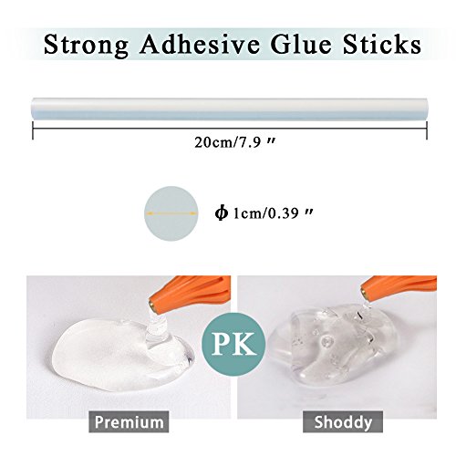 - ▶10 Pcs Adhesive Glue Sticks Included - Glue sticks size: 0.39’’ (diameter)*7.9(length) each. Super durable adhesive and easy cleaning properties to protect your health and items. Erasing your distress of often changing the sticks when you work.