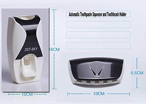 Automatic Toothpaste Dispenser with Toothbrush Holder Set/ Wall Mounted Kids Hands Free Toothpaste Squeezer Black