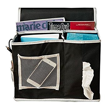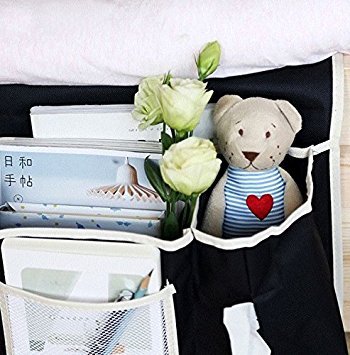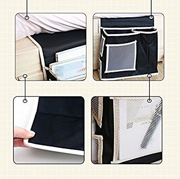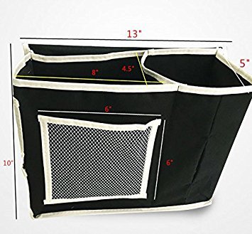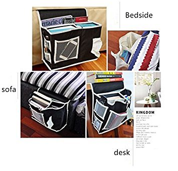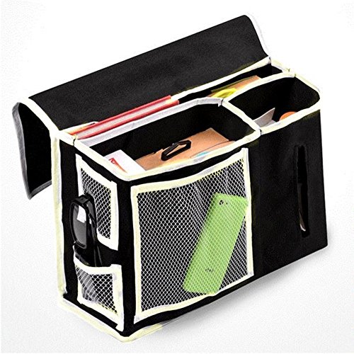 leoyoubei13x10 Inch Bedside Sofa Caddy Storage Bag Accessory TV Remote Book Organizer Large capacity 6 pockets for quick viewing and storage and Kleenex pocket oxford cloth(black)