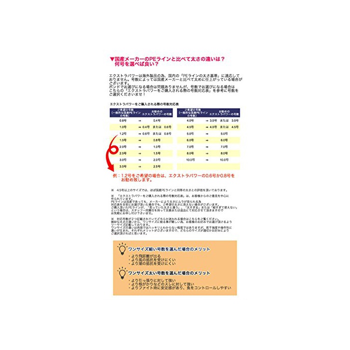 엑스트라 파워는 해외 제품 이기 때문에,국내의「PE라인의 굵음 기준」에 적응하고 있지 않습니다.호수 에 따라서는 국산 메이커와 비교해 굵 #에 마무리되고 있다 경우 (이)가 있습니다.
