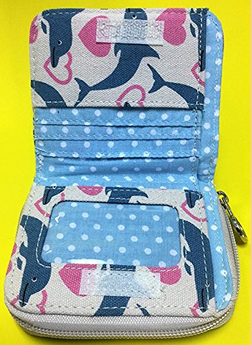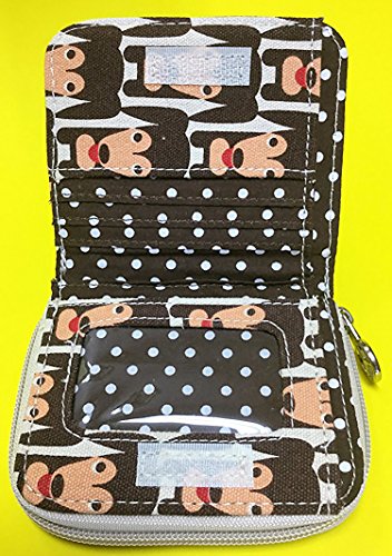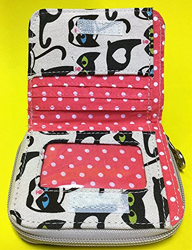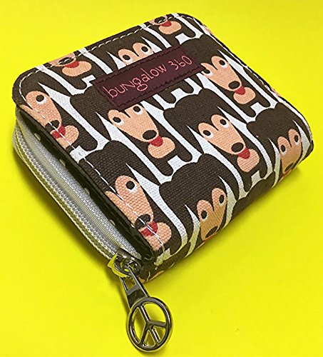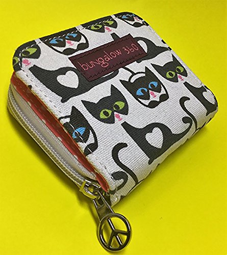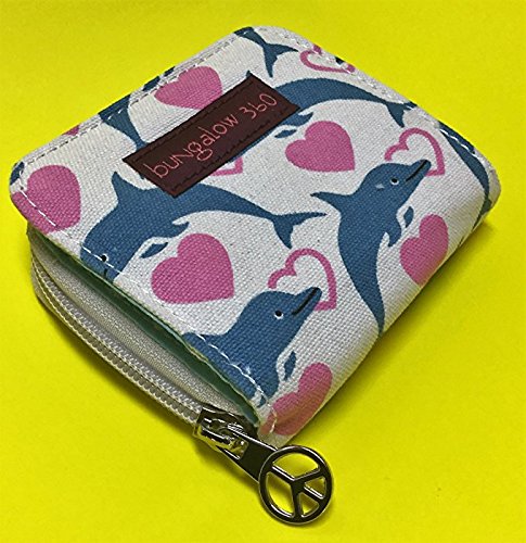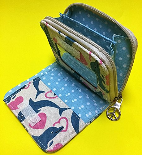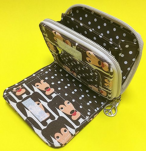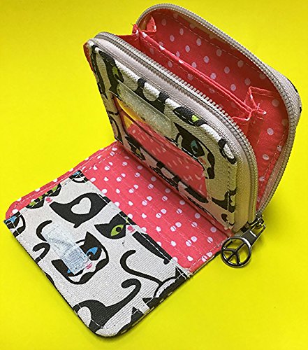 -. Feature : Natural cotton canvas / Peace sign zipper pull / Velcro closure & zippered coin purse / Polka dot lining