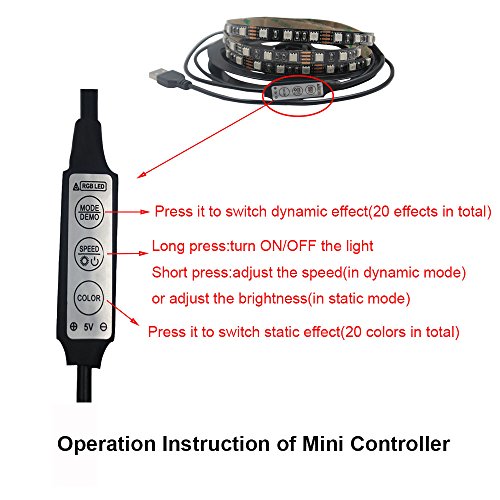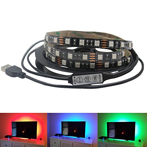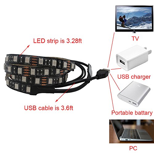 ZGX USB Powered Flat Screen TV LCD Blacklight,Computer LED Strip Light 3.28Ft/1M 5050RGB Multicolor Flexible Cuttable Indoor Home Decor Lighting with Mini Controller for Laptop (1M/3.28ft)