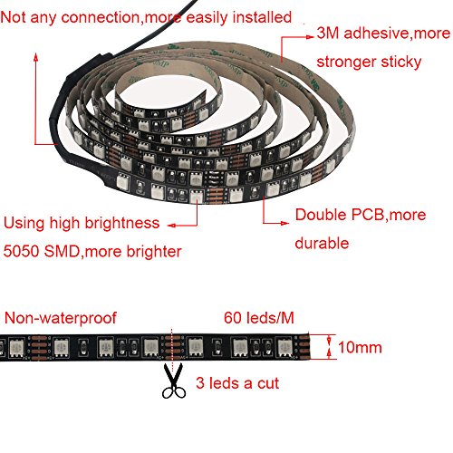 - [HIGH BRIGHTNESS 5050 SMD and 24 MONTHS WARRANTY] Our LED strip light adopt high-quality(24 months warranty) and high brightness SMD LED,stronger color developing effect,longer life time.