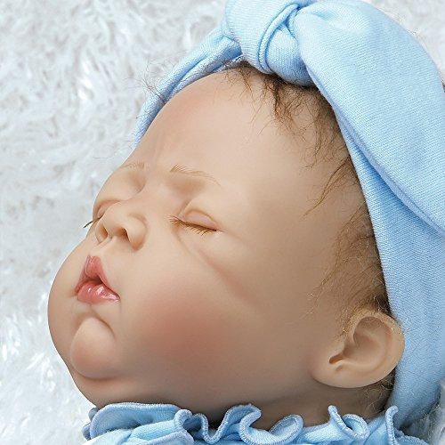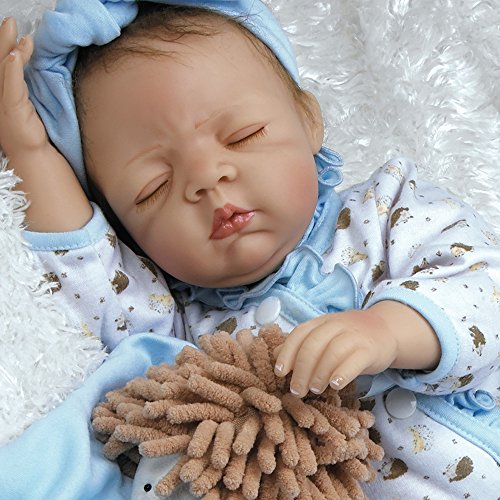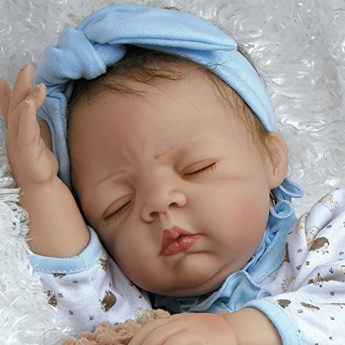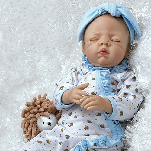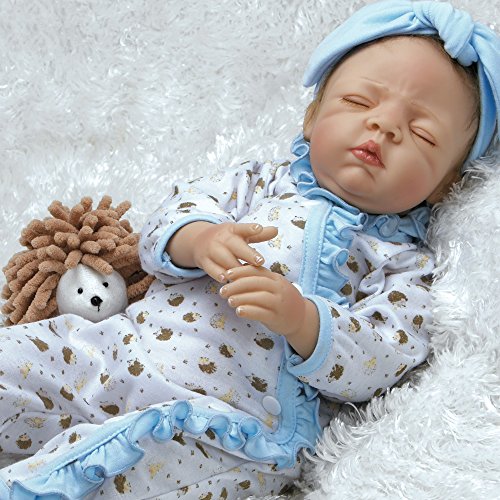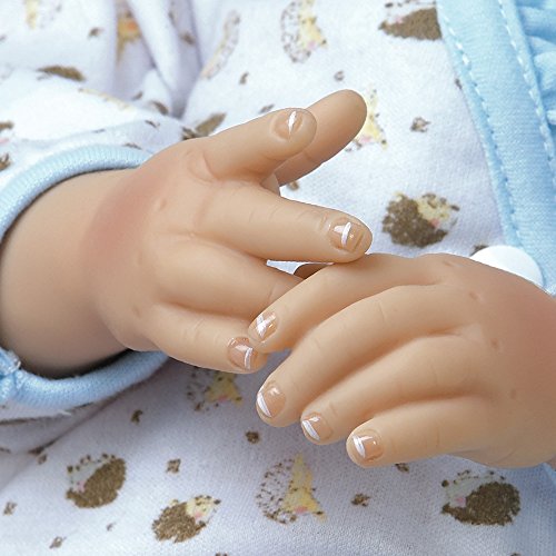 Hedgehog heaven! You wonÆt want to wake up sweet slumbering Hannah, a newborn baby girl who looks so real and lifelike, youÆll find yourself tiptoeing about to preserve every second of her beauty sleep. And who doesnÆt love hedgehogs? Hannah All bundled up and ready to go night night, Hannah is outfitted in a precious pair of pajamas - a snug white long-sleeved sleeper featuring a winsome hedgehog pattern with ruffled light blue trim accenting the neck and trailing down the front. HannahÆs dreamy outfit includes a light blue knotted headband and soft crib shoes in a matching hedgehog pattern with light blue ribbon ties. Hannah is expertly handcrafted in GentleTouch vinyl with a weighted cloth body that makes her feel so real and amazingly authentic in your arms. Her dreamy expression features peaceful closed lids with a sweet furrowed blushing brow, plump rosy cheeks, perfectly shaped CupidÆs bow lips and the softest light brown faux mohair. HannahÆs charming sleepy time ensemble also includes a satiny soft light blue blanket and a round and cuddly hedgehog friend named Harley, both ideal for extra cuddling. Sleep tight Hannah and Harley!Feature