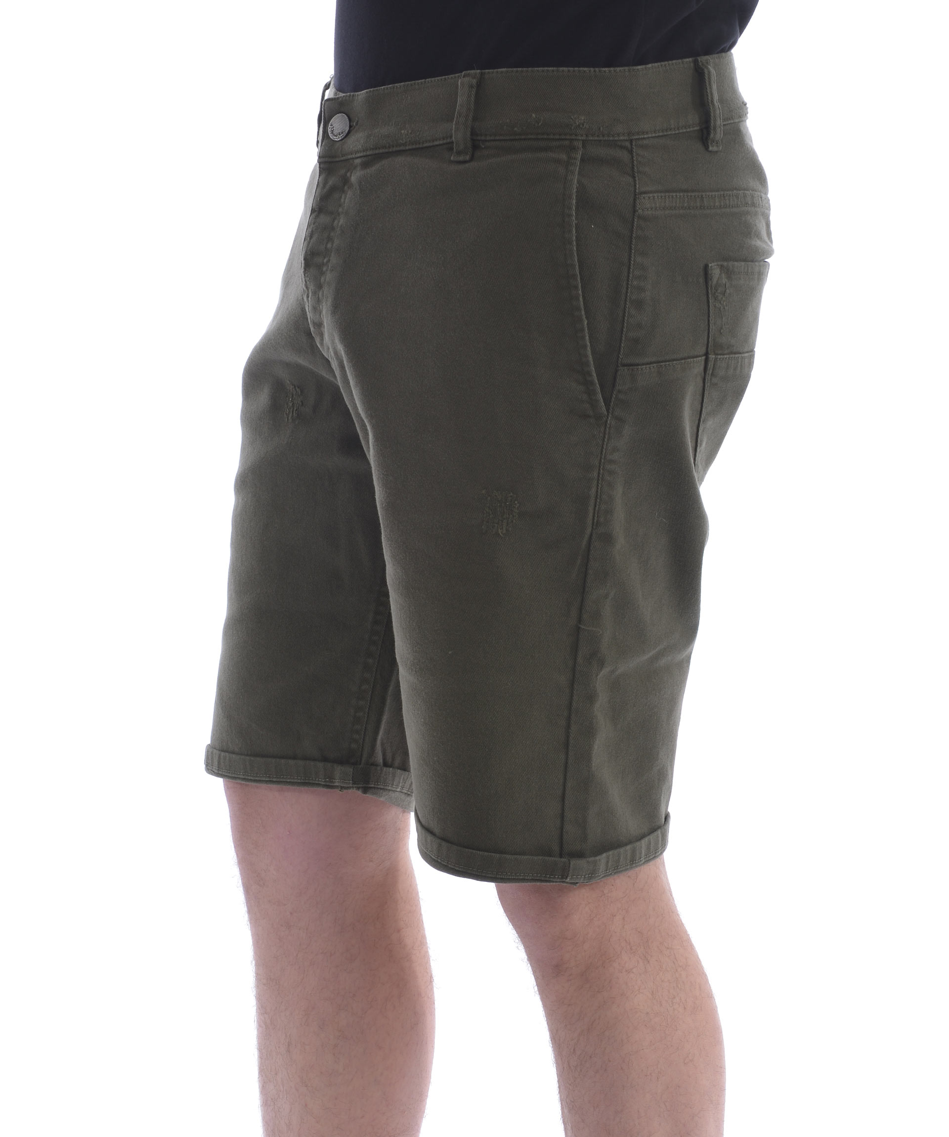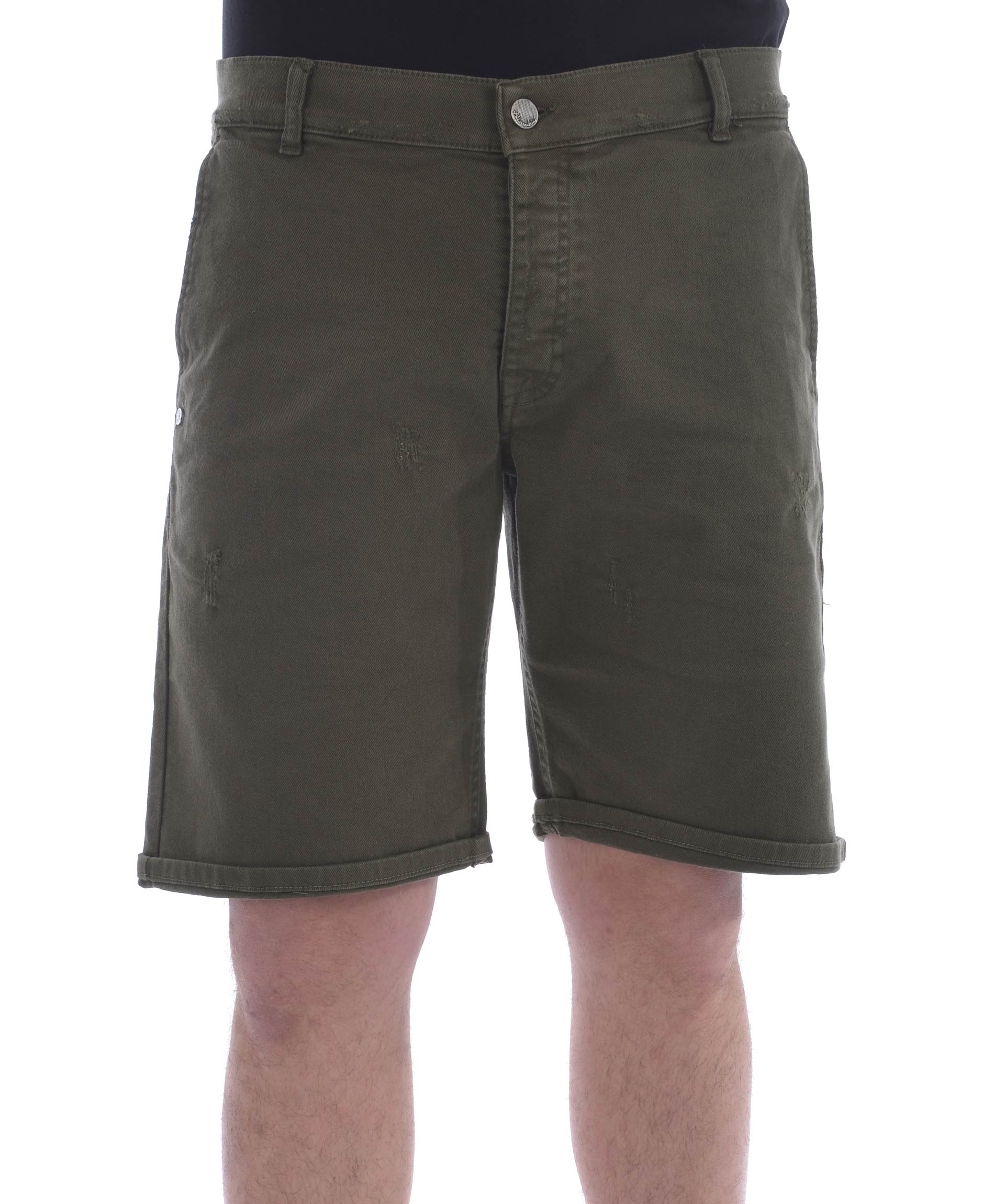 Classic Shorts from Daniele Alessandrini: Military Green Classic Shorts with front button and zip closure, waistband with belt loops, two slant pockets at front and rear patch pockets.