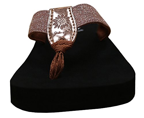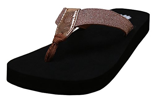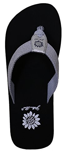 Product DescriptionA light weight durable flip flop in glitter fabric. soft lining offers comfort on the foot. perfect for every day0