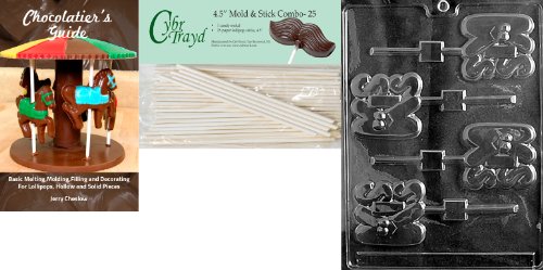 Cybrtrayd 'Kiss Lolly' Valentine Chocolate Candy Mold with 25 4.5-Inch Lollipop Sticks and Chocolatier's Guide