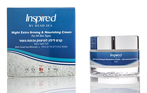 -. Binding : Misc. -. Brand : Inspired by Dead Sea -. EAN : 7290013064417 -. Feature : FIGHTS AGING SIGNS - Prevents wrinkles from deepening and quickly reduces the appearance of fine lines, wrinkles, and signs of aging. Deeply hydrating night firmimg formula will nourish your face skin, neck and décolleté areas as you sleep. / FORMULATED FOR DEEP HYDRATION and ABSORBTION - Moisturizes to the base of your skin, not just on the surface, which lasts up to 8-10 hours. Locks in the moisture and leaves your skin feeling and looking YOUTHFUL and RADIANT. / POWERFUL PROVEN ANTI AGING INGREDIENTS - This antiwrinkle formula provides a highly effective delivery mechanism for clinically proven anti aging ingredients like Hyaluronic Acid and Peptides use as an alternative to Botox to avoid expensive and invasive cosmetic procedures. In addition anti oxidants with Dead Sea minerals deliver just what your skin needs! / REPAIRS AND PROTECTS - Our face moisturizer repairs damaged cells, stimulates new cell growth and restores your skin's balance. Stimulates collagen production, strengthens fibers, improves elasticity, protects from damaging free radicals while reducing fine lines and wrinkles. / WORKS OR YOUR MONEY BACK GUARANTEE - We back the cream up with a 180-day hassle-free money back guarantee, no matter where you buy our product. There is absolutely no risk to you when you order now! If you are not completely satisfied, simply contact us and we will give you a full refund, no questions asked (you do not even have to return the jar). We are so confident that you will love this eye cream that if you are not satisfied please contact us for a complete refund.Our priority is to make sure our customers are completely satisfied! -. Label : Inspired by Dead Sea -. Manufacturer : Inspired by Dead Sea -. ProductGroup : Beauty -. ProductTypeName : BEAUTY -. Publisher : Inspired by Dead Sea -. Studio : Inspired by Dead Sea -. Title : Inspired by Dead Sea Night Extra Firming and Nourishing Cream with Peptides and Hyaluronic Acid 50 ml / 1.7 fl.oz