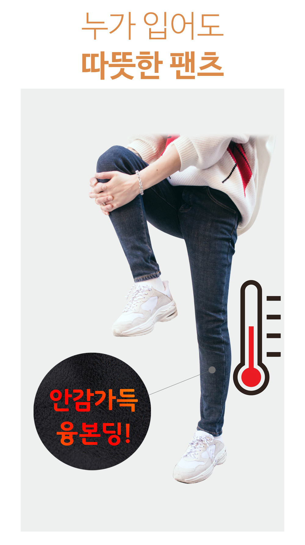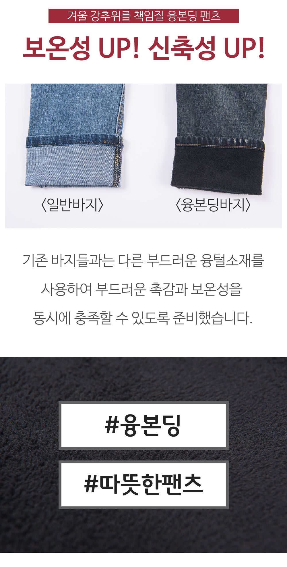 한겨울 밖에서도 극세사 이불을 덮은듯 부드럽고 따뜻하게 입을 수 있는 청바지입니다.
