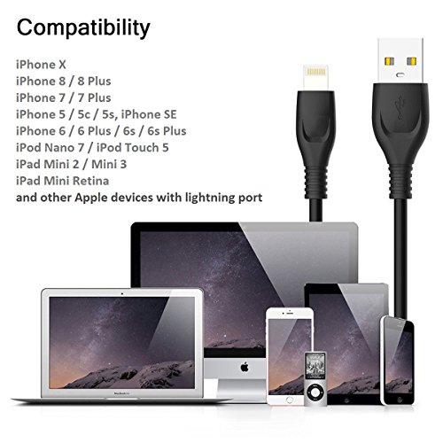 Studio : AmzCable Publisher : AmzCable Binding : Wireless Phone Accessory Product Description Compatibility: Compatible with iPhone X / 8 / 8 Plus / 7 / 7 Plus / 6 / 6 Plus / 5s / 5c / 5, iPad Air / Air 2, iPad Mini / Mini 2 / Mini 3, iPod nano (7th generation) and iPod touch (5th generation). /br> Package: 3-Pack 3ft iPhone Cable (White/Black/Red/Purple) 0