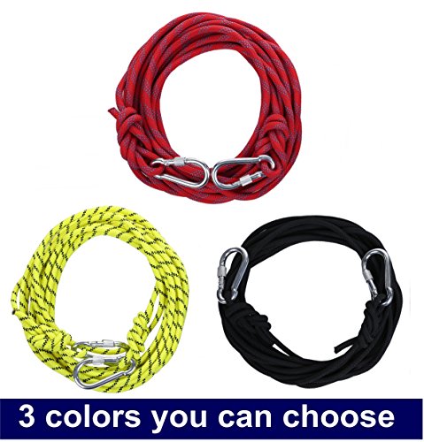 Features: --Strong abrasive resistance, easy portability --Reinforced polyester rope, durable --Perfect Ideal for Fire Rescue Parachute, Climbing support, Hiking, Camping, and other outdoor activities --Two carabiners in the both end of the rope to satisfy your activities 0