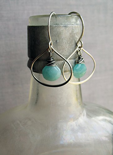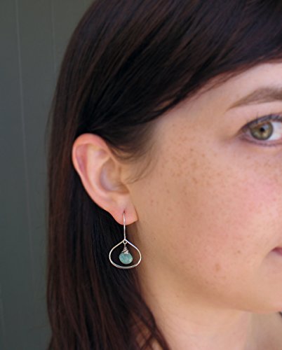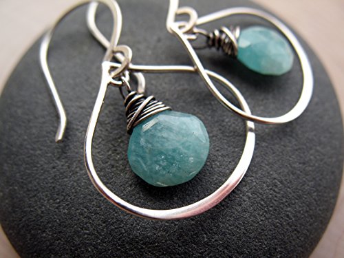 -. Title : Aqua Amazonite Gemstone & Sterling SIlver Curvy Drop Earrings